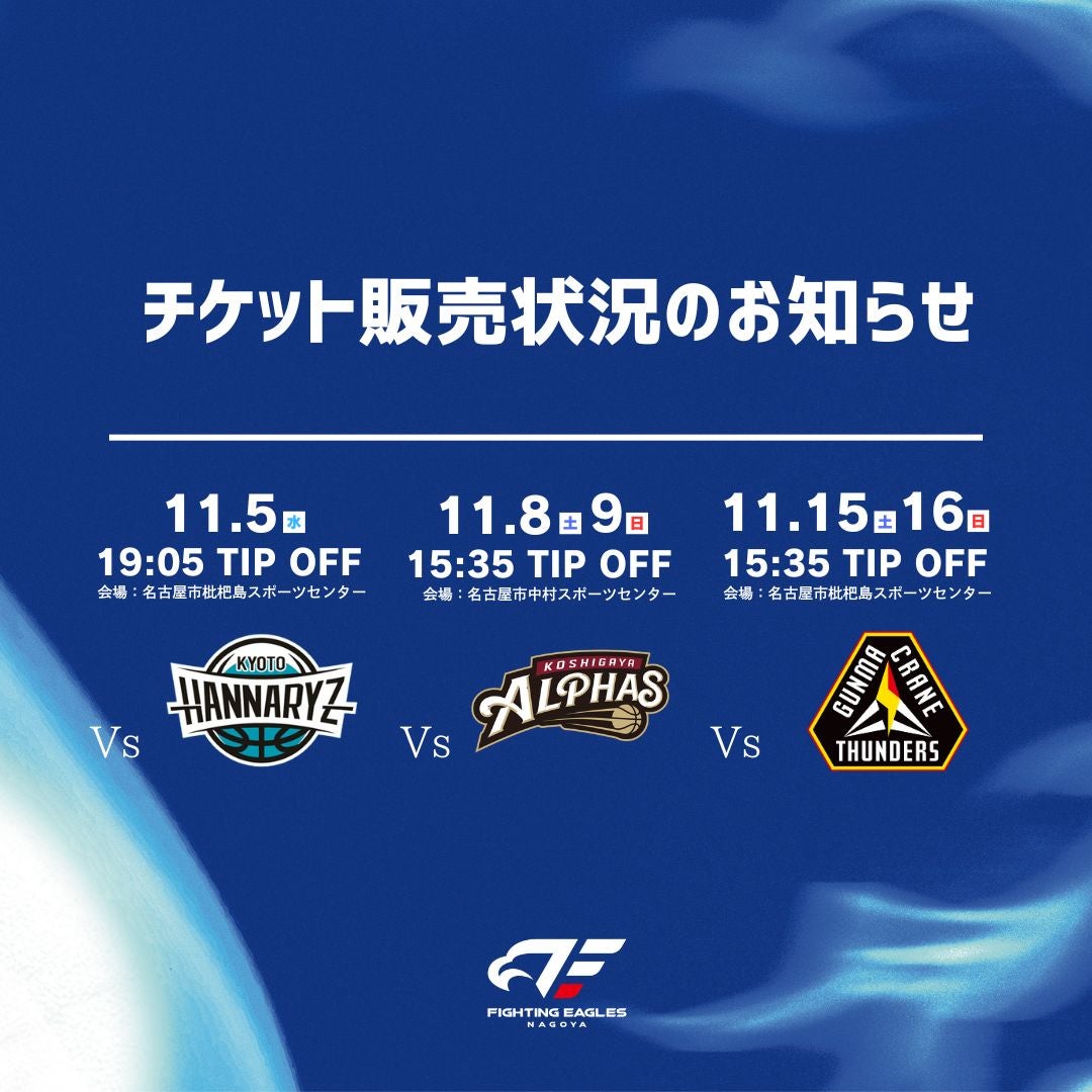 【11月開催ホームゲーム】チケット販売状況のお知らせ