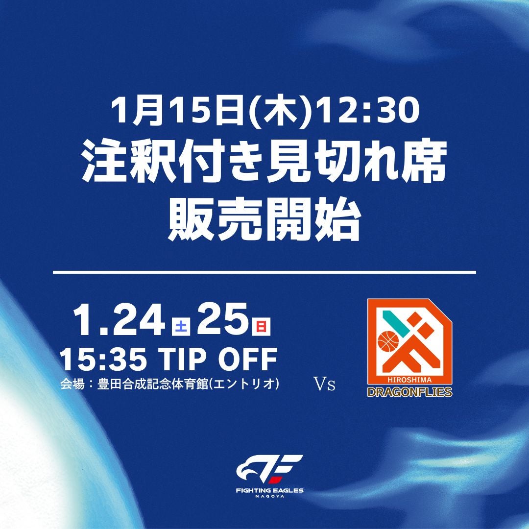 【チケット販売情報】1/24(土)25(日) 広島戦 注釈付き見切れ席 販売のお知らせ