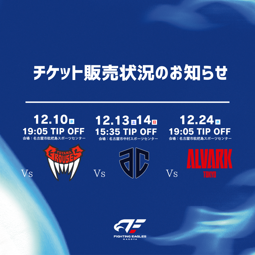 【12月ホームゲーム】チケット販売状況のお知らせ