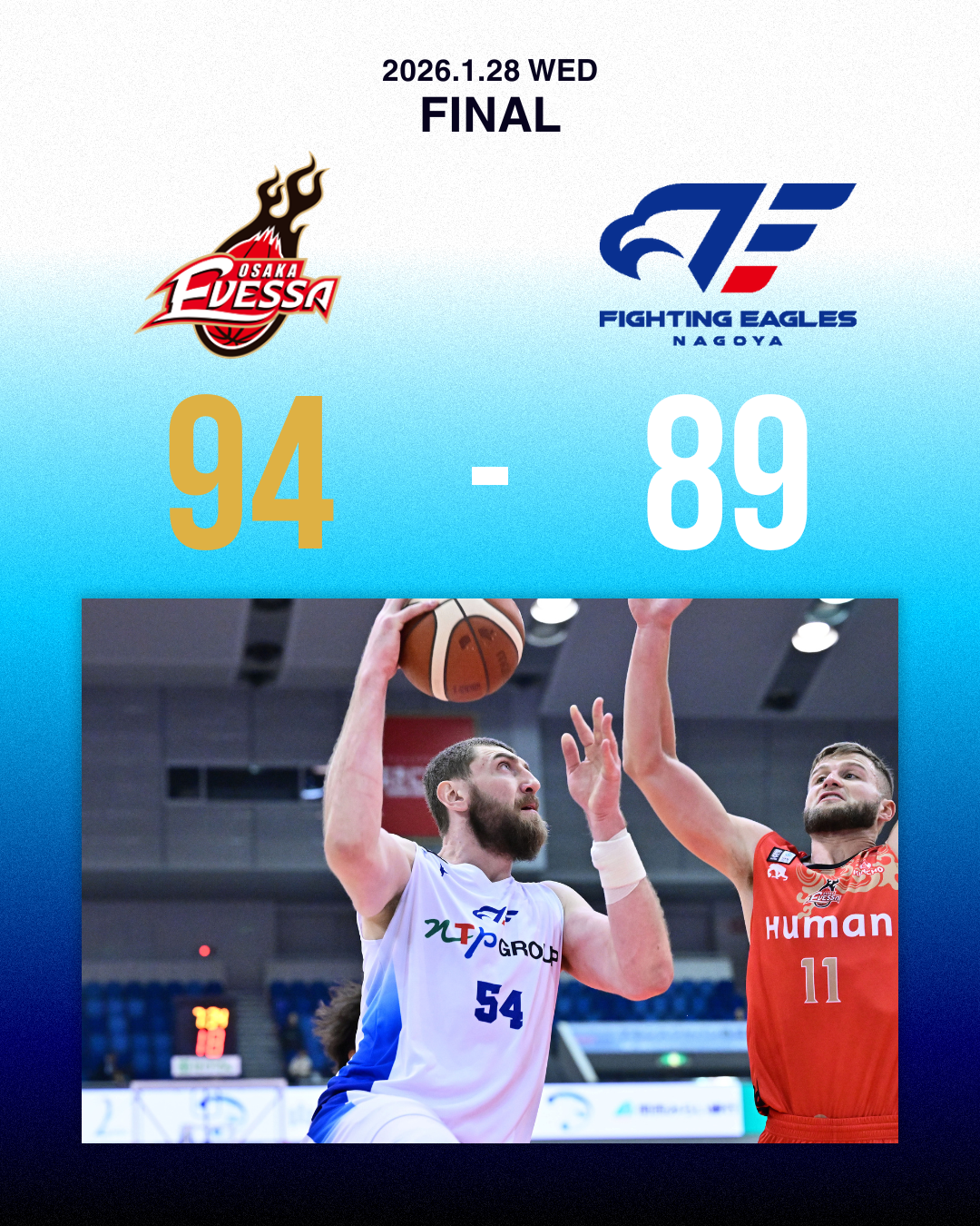 【試合結果】第20節 1/28(水) vs大阪エヴェッサ