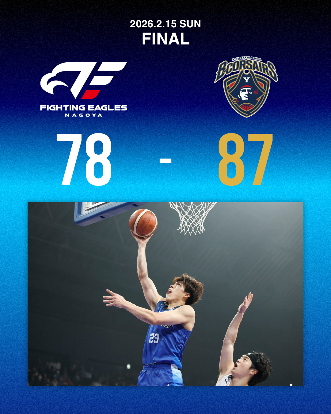 【試合結果】第23節 2/15(日) vs 横浜ビー・コルセアーズ