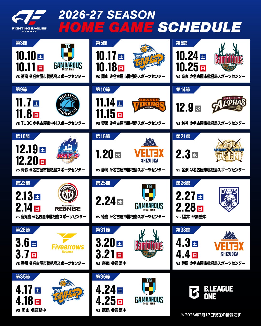 【イベント情報】2026/3/7(土)8(日) vs 三遠ネオフェニックス