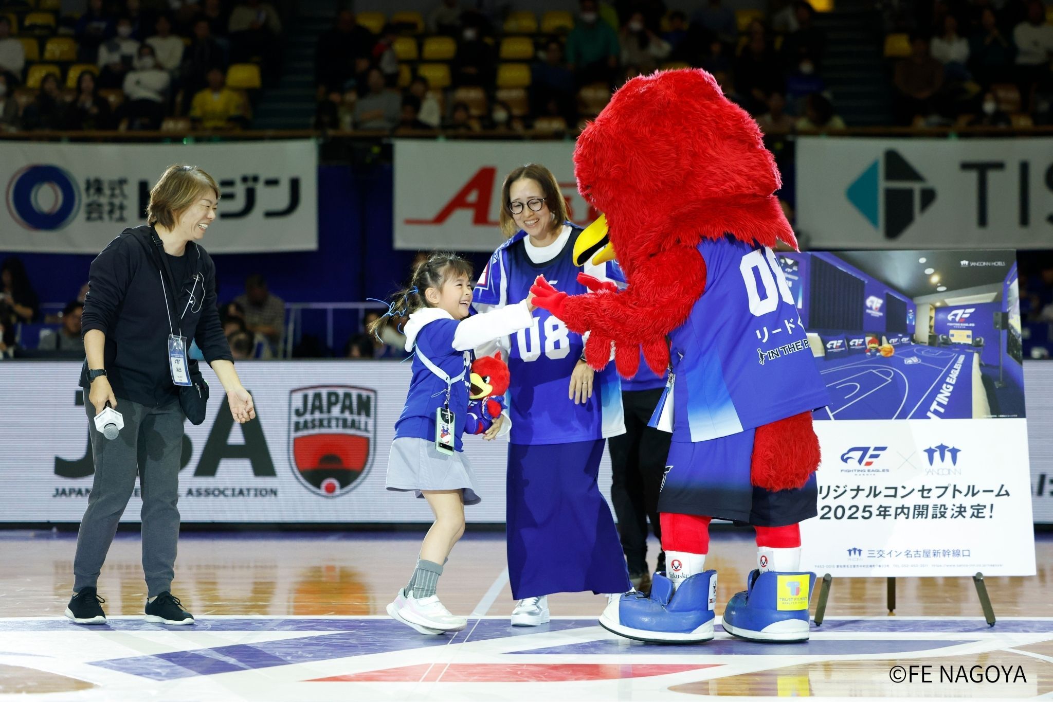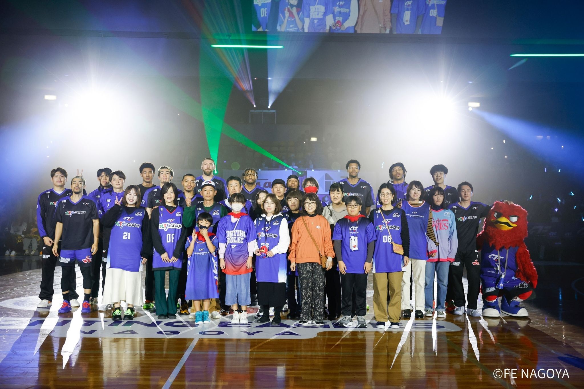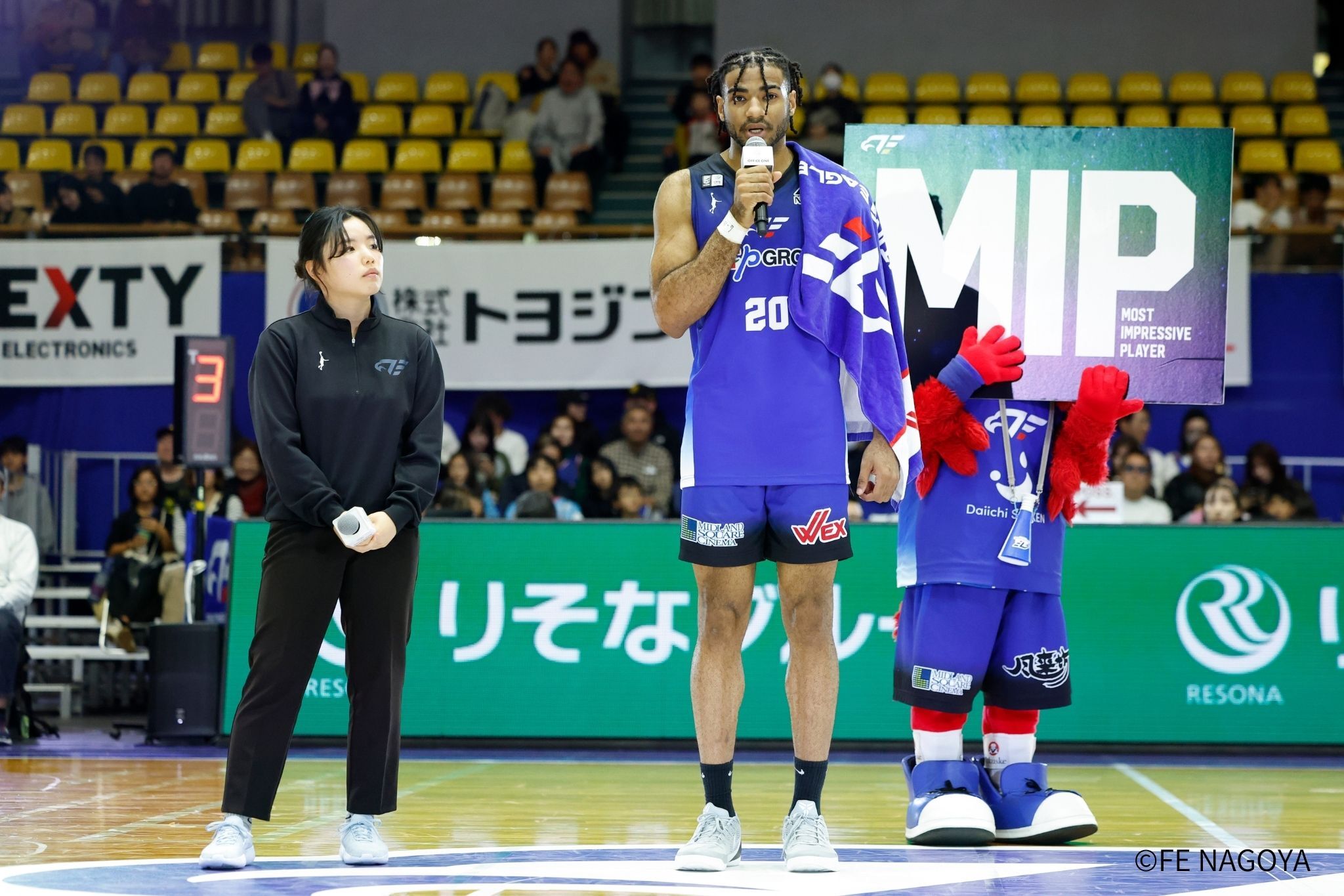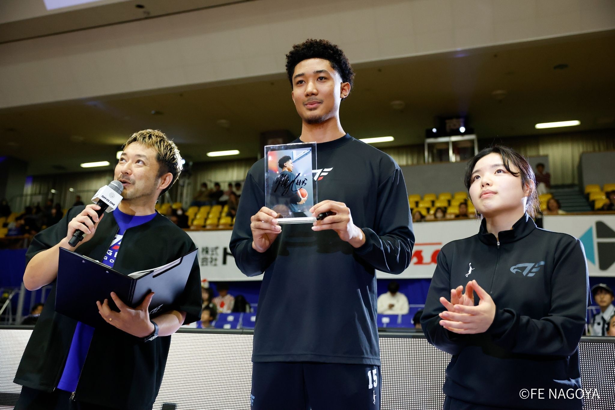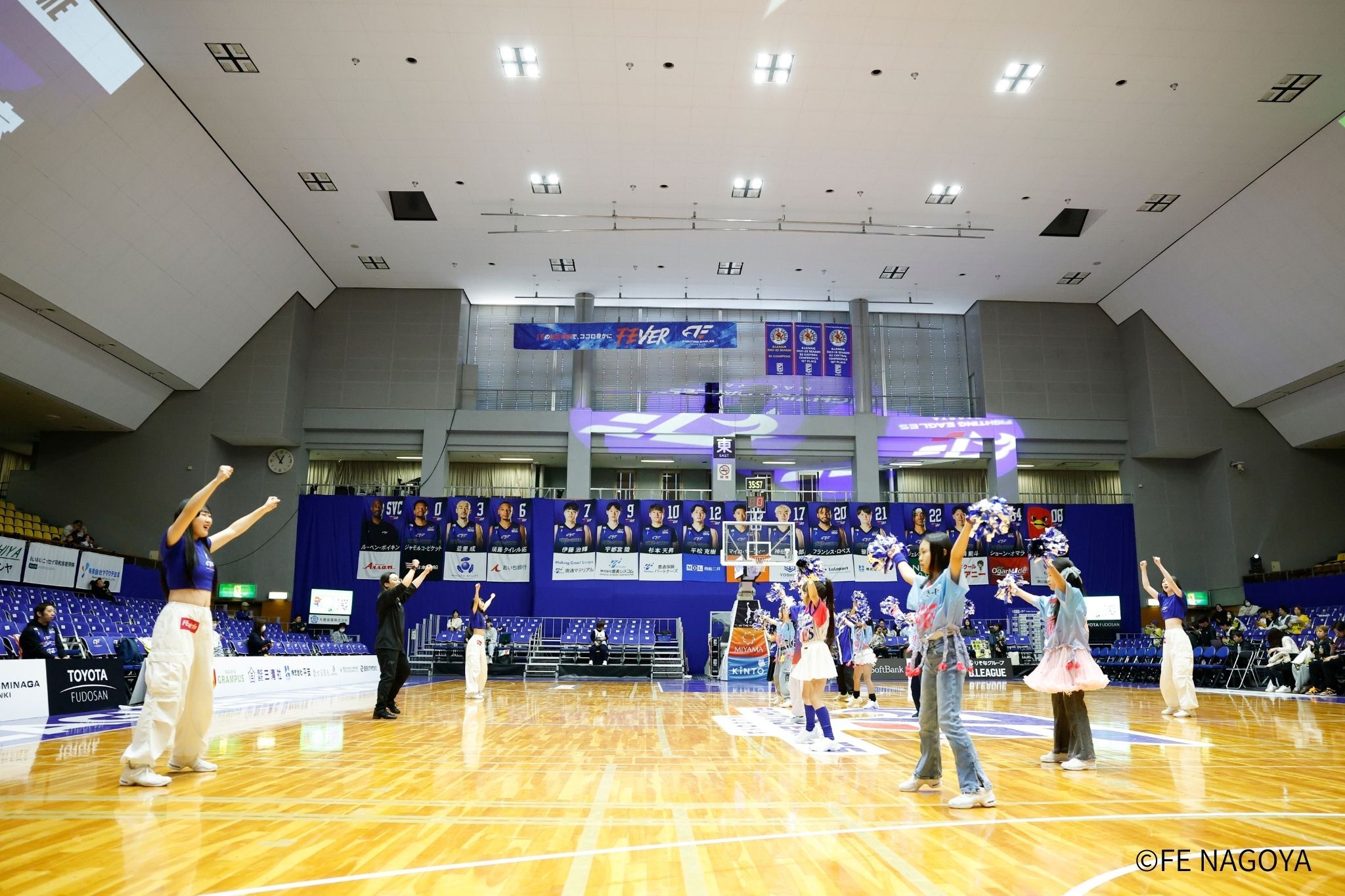 群馬に連続得点を許してスタート。FE名古屋は、#22 ジョーンズがフリースローを獲得して、2点を返す。#22 ジョーンズが続けて3Pシュートを沈めた後、#54 オマラがポストプレーで連続得点し、9-4とする。直後に群馬にバスケットカウントを許し、9-7。残り6分を切って、#22 ジョーンズが再び3Pシュートを沈めるも、群馬に2回目のバスケットカウントを与えてしまい、2点差のまま。今度は、#0 ピケットがフローターを決めた後群馬にジャンパーを許してしまう。FE名古屋は走って、#0 ピケットが得点するが、群馬のインサイドを止められず。残り4分を切り、#0 ピケットが今度はジャンパーを沈めて、18-14とするが、#22 ジョーンズがテクニカルファールを宣告されてしまい、フリースローで失点の後、群馬にドライブを許し、1点差とされる。残り2分半、#20 ロペスがフリースローで1点を加えるが、群馬に返され同点。その後、#20 ロペスがゴール下を決めて、21-19とした後、群馬にフリースローを許し、同点に戻り、残り1分半。群馬が3Pシュートを沈めリードを許す。#54 オマラが2点を返し、最後の攻防で、#10 杉本が走って逆転に成功し、25-24で、1Q終了。