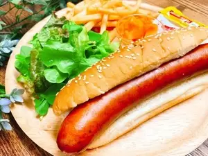 一口でジュワッと旨味が溢れ出す、食べ応え抜群の粗挽きソーセージとふわふわのバンズが魅力のホットドッグ♪