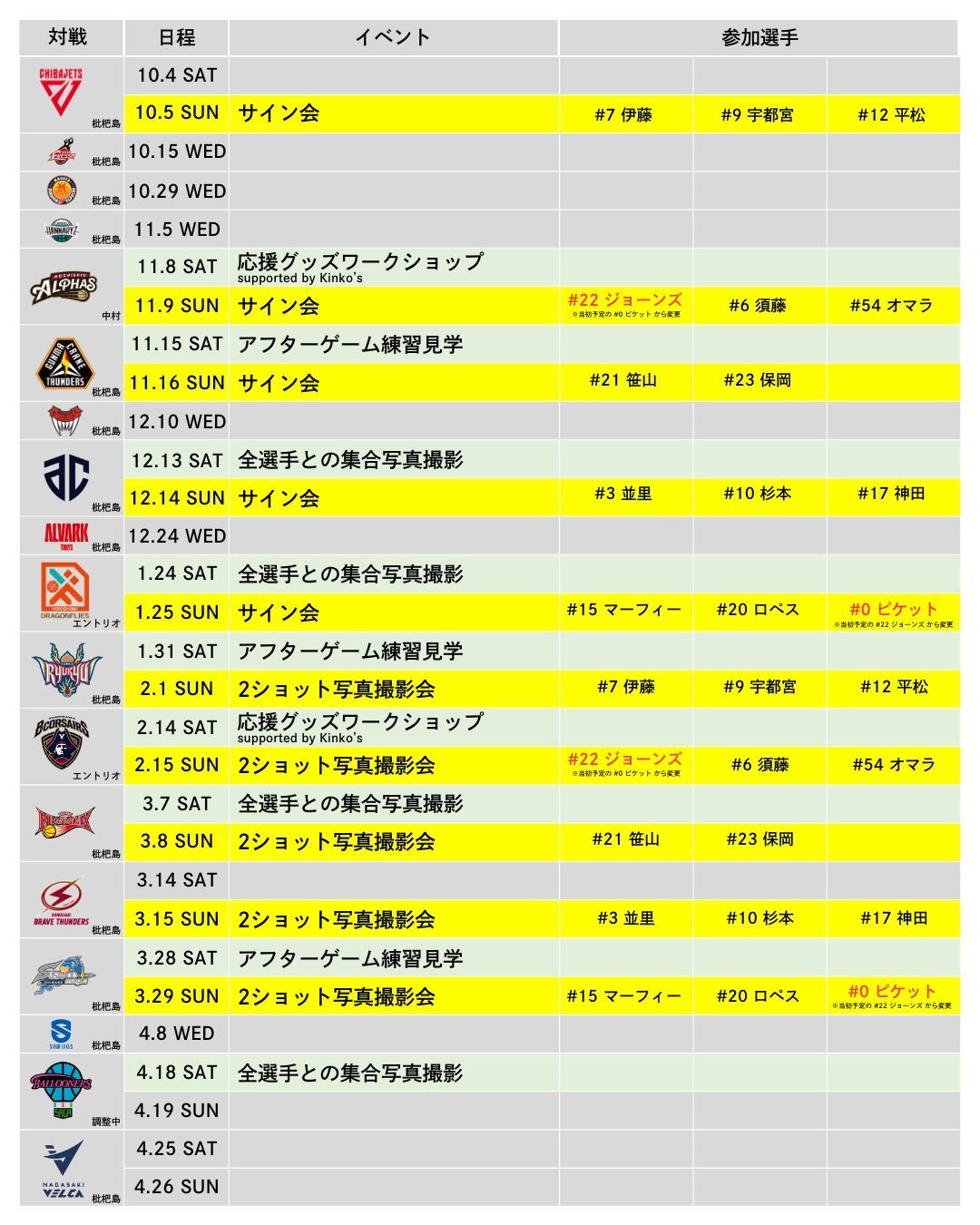※2025.9.25 更新 … 下記日程の参加選手の変更がありました