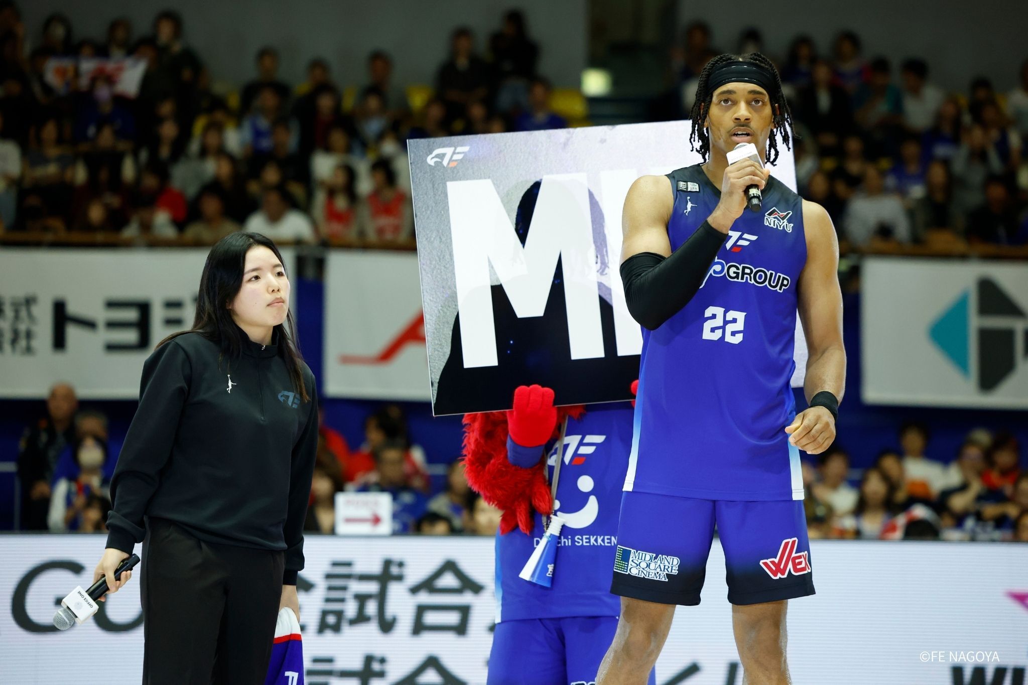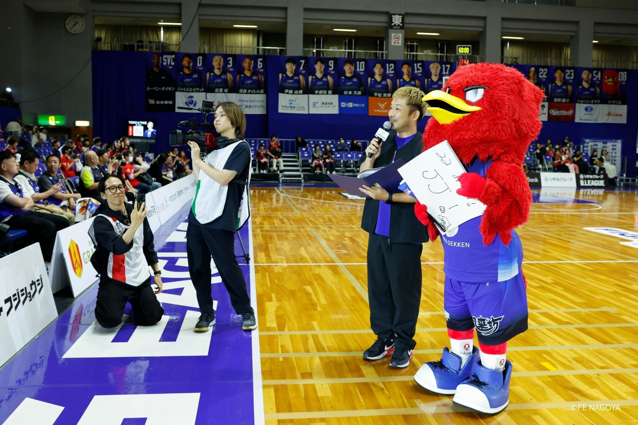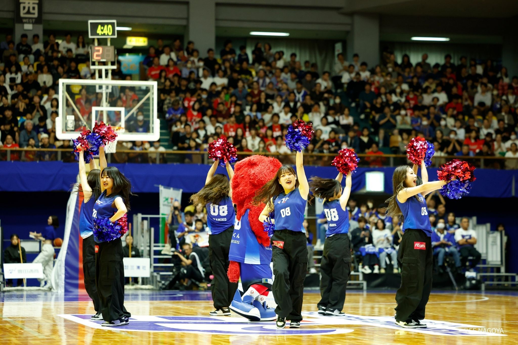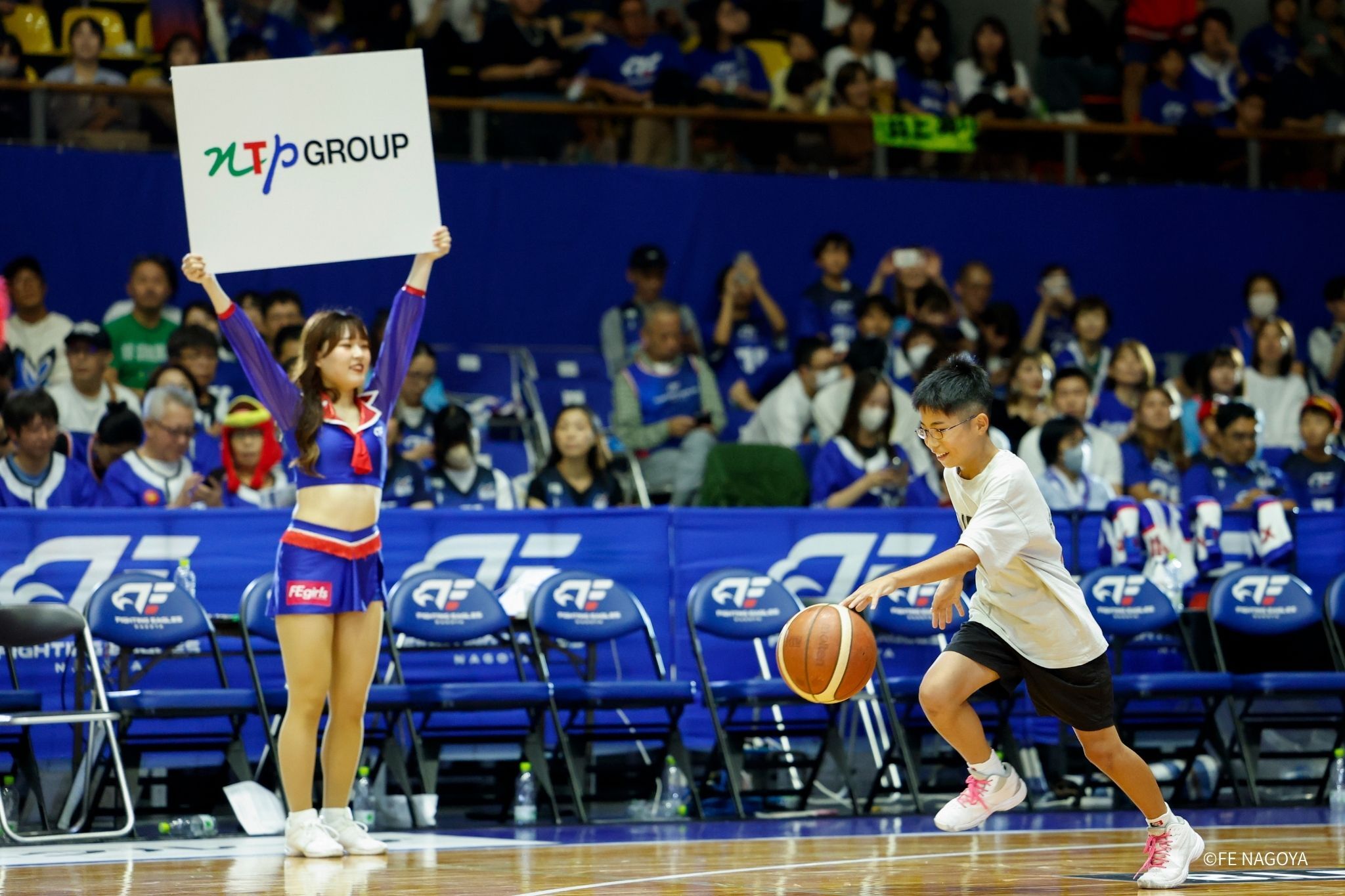 千葉Jが、外国籍選手の個人技で先制し、リードチェンジ。FE名古屋は、#54 オマラのリバウンドショットで決め返す。続けて、セットプレーから#23 保岡が3Pシュートを沈める。さらに#0 ピケットも3Pシュートを決めるが、直後に千葉Jも3Pシュートを返し、35-31。FE名古屋は3連続目となる3Pシュートを#10 杉本が決めて、38-31で、オフィシャルタイムアウト。タイムアウト明け、#22 ジョーンズがスティールの後、ドライブから得点するも、千葉Jが直後に3Pシュートを返す。その後、#54 オマラがタフショットを決めて、42-34。残り3分のところで#22 ジョーンズのディープ3Pが決まり、二桁リードを奪う。しかし、千葉Jが早い切り替えしから、2点を返し、45-36。残り2:11、千葉Jにフリースローを与えるファールを犯したところで、FE名古屋が前半1回目のタイムアウト。タイム明け、千葉Jがフリースローを1本決めて、8点差でリスタート。FE名古屋のシュートが外れて、千葉Jに連続得点を許し、4点差に迫られる。しかし、#0 ピケットが3Pシュートを決めて、残り1分、48-41とし、残り41秒でFE名古屋ポゼッションとなったところで、2回目のタイムアウト請求。タイムアウト明け、#6 須藤がリバウンドを押し込んで得点するも、最後に千葉Jが3Pシュートを決めて、50-44で、前半終了。