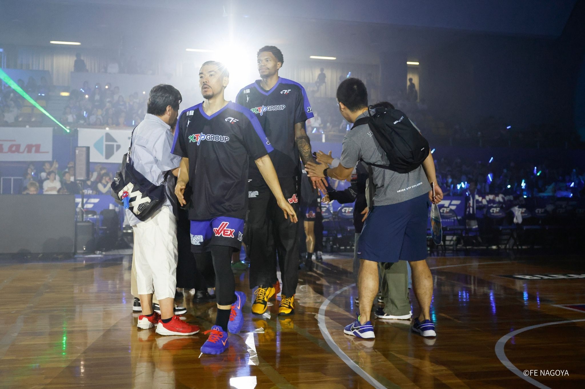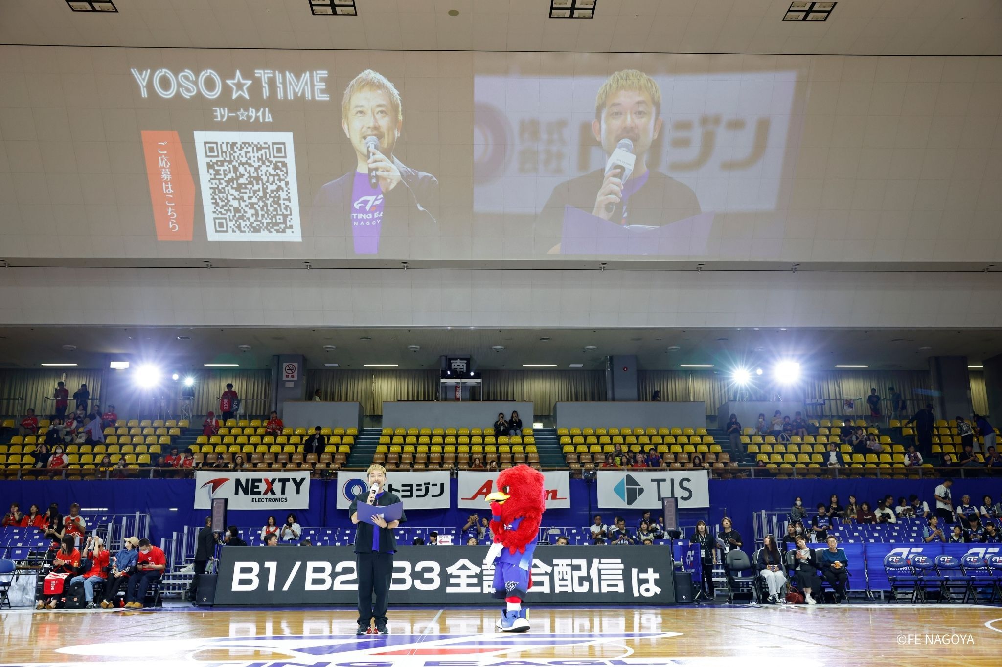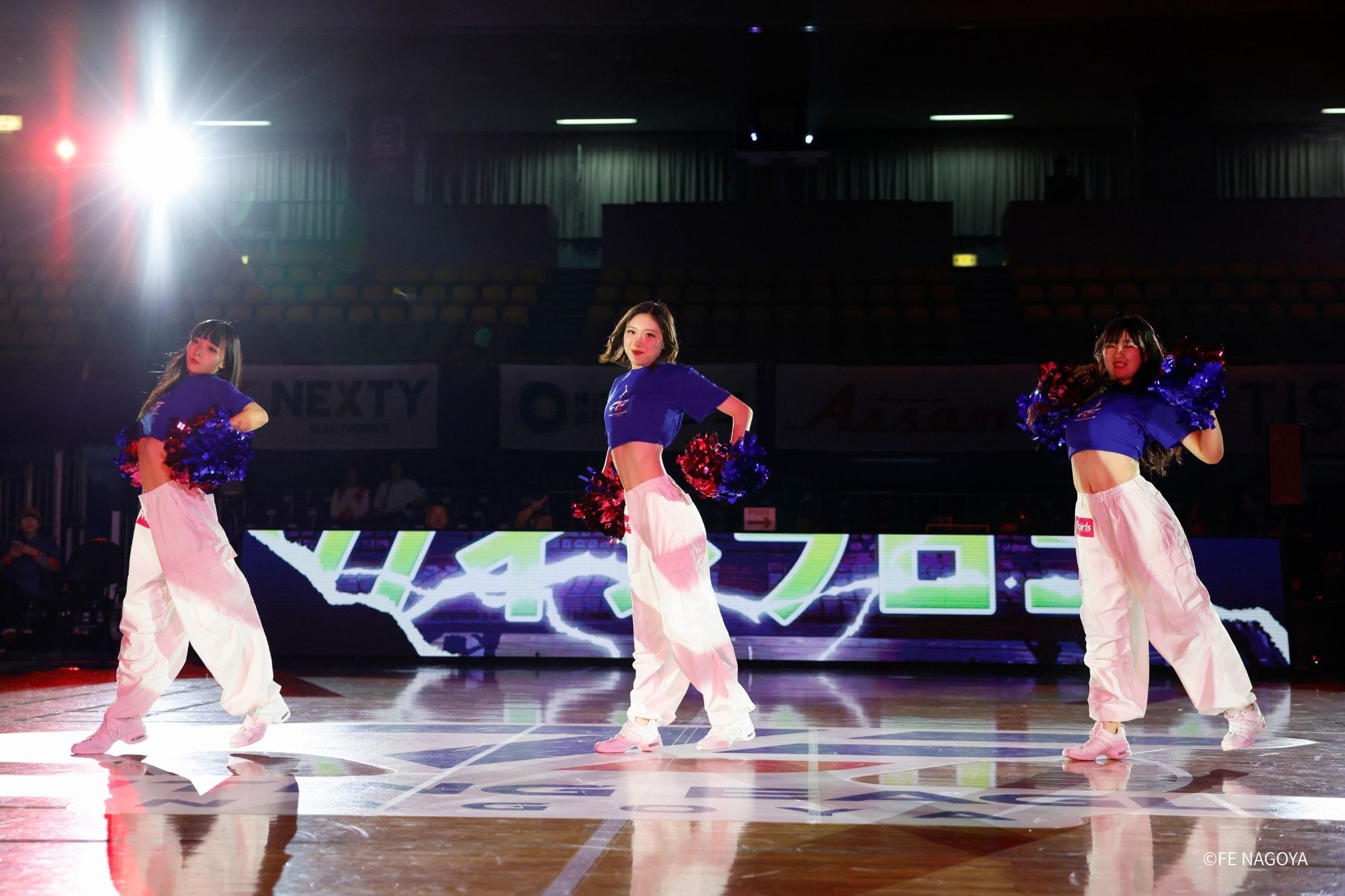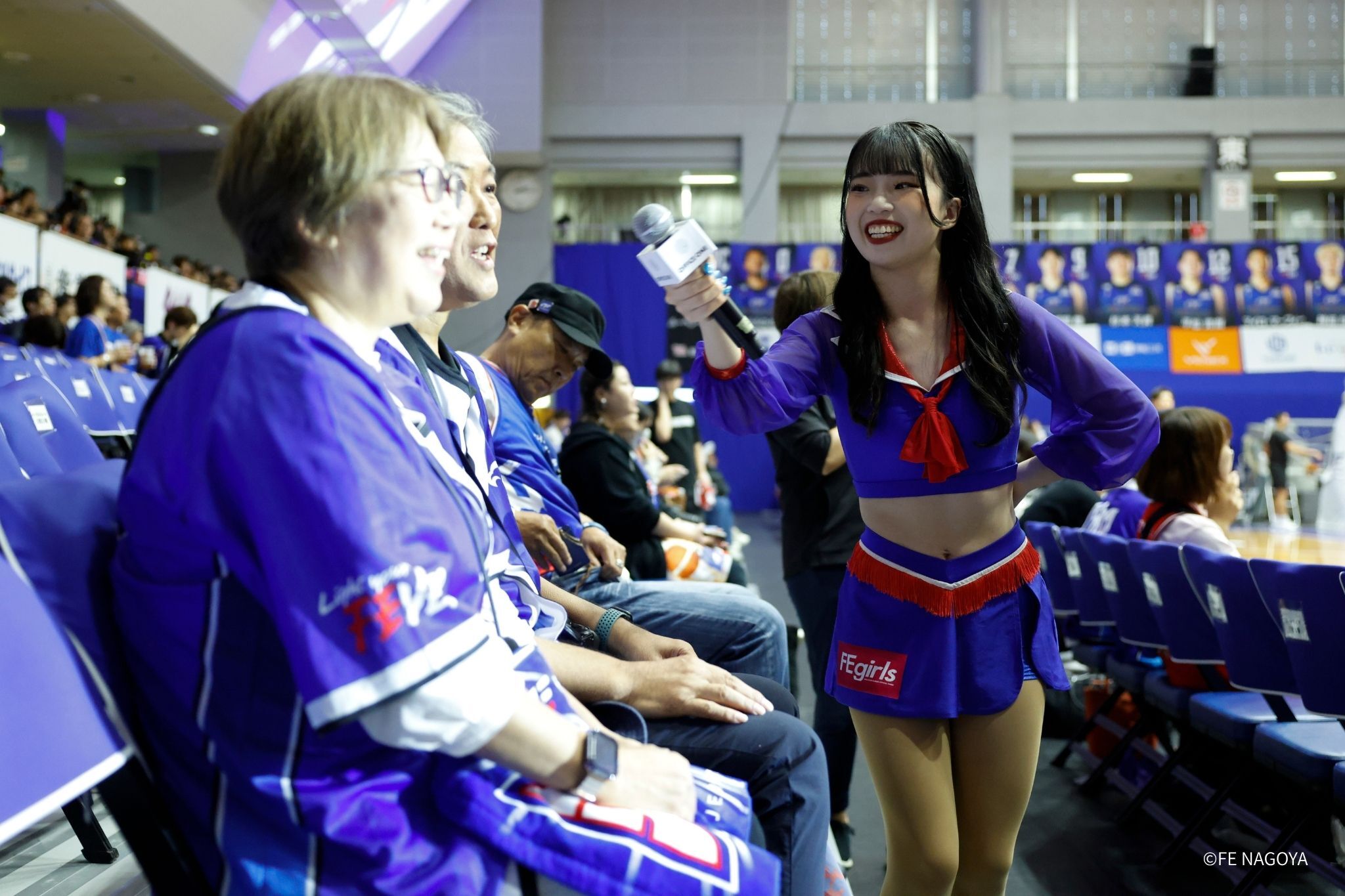 千葉Jが、外国籍選手の個人技で先制し、リードチェンジ。FE名古屋は、#54 オマラのリバウンドショットで決め返す。続けて、セットプレーから#23 保岡が3Pシュートを沈める。さらに#0 ピケットも3Pシュートを決めるが、直後に千葉Jも3Pシュートを返し、35-31。FE名古屋は3連続目となる3Pシュートを#10 杉本が決めて、38-31で、オフィシャルタイムアウト。タイムアウト明け、#22 ジョーンズがスティールの後、ドライブから得点するも、千葉Jが直後に3Pシュートを返す。その後、#54 オマラがタフショットを決めて、42-34。残り3分のところで#22 ジョーンズのディープ3Pが決まり、二桁リードを奪う。しかし、千葉Jが早い切り替えしから、2点を返し、45-36。残り2:11、千葉Jにフリースローを与えるファールを犯したところで、FE名古屋が前半1回目のタイムアウト。タイム明け、千葉Jがフリースローを1本決めて、8点差でリスタート。FE名古屋のシュートが外れて、千葉Jに連続得点を許し、4点差に迫られる。しかし、#0 ピケットが3Pシュートを決めて、残り1分、48-41とし、残り41秒でFE名古屋ポゼッションとなったところで、2回目のタイムアウト請求。タイムアウト明け、#6 須藤がリバウンドを押し込んで得点するも、最後に千葉Jが3Pシュートを決めて、50-44で、前半終了。