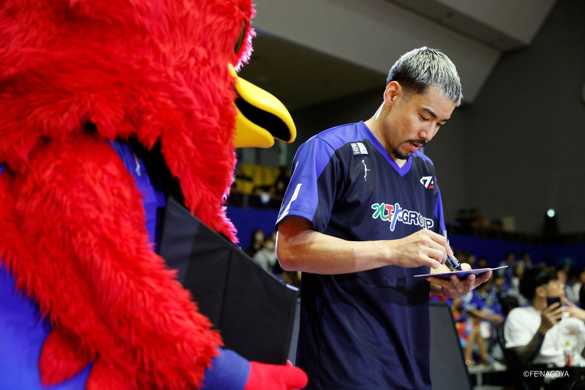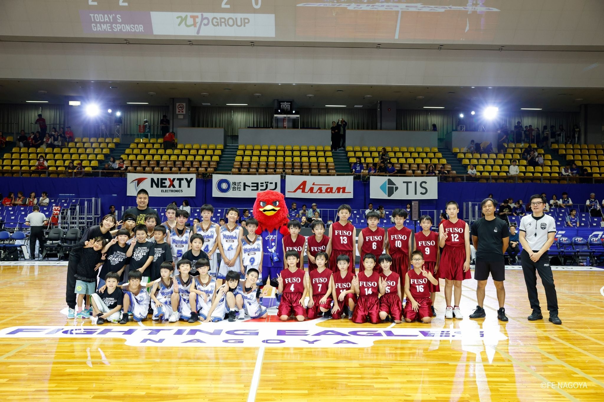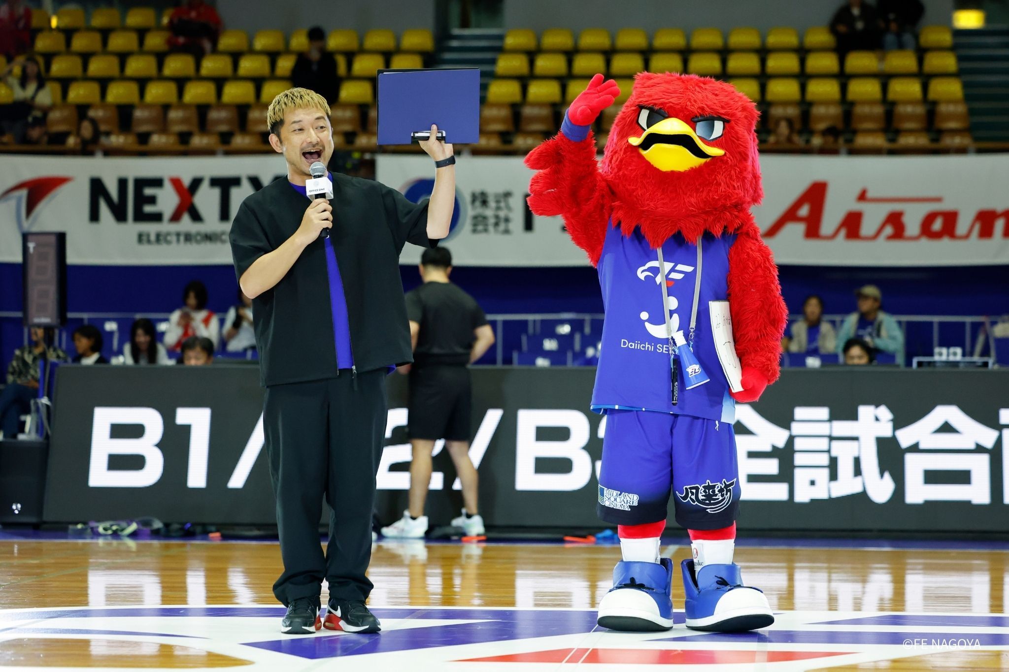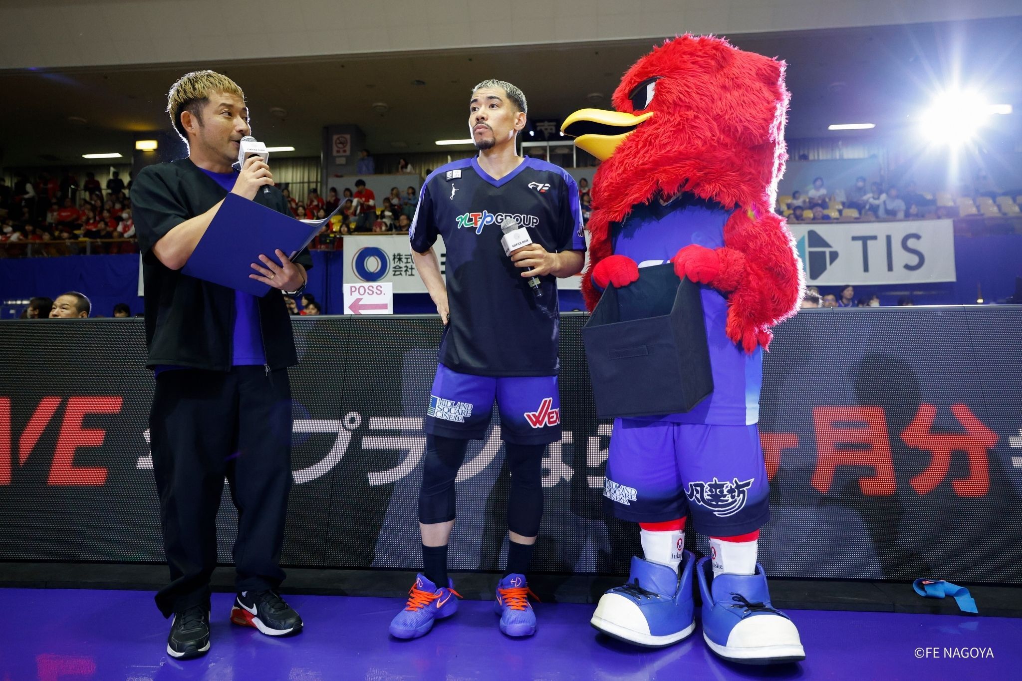 千葉Jが、外国籍選手の個人技で先制し、リードチェンジ。FE名古屋は、#54 オマラのリバウンドショットで決め返す。続けて、セットプレーから#23 保岡が3Pシュートを沈める。さらに#0 ピケットも3Pシュートを決めるが、直後に千葉Jも3Pシュートを返し、35-31。FE名古屋は3連続目となる3Pシュートを#10 杉本が決めて、38-31で、オフィシャルタイムアウト。タイムアウト明け、#22 ジョーンズがスティールの後、ドライブから得点するも、千葉Jが直後に3Pシュートを返す。その後、#54 オマラがタフショットを決めて、42-34。残り3分のところで#22 ジョーンズのディープ3Pが決まり、二桁リードを奪う。しかし、千葉Jが早い切り替えしから、2点を返し、45-36。残り2:11、千葉Jにフリースローを与えるファールを犯したところで、FE名古屋が前半1回目のタイムアウト。タイム明け、千葉Jがフリースローを1本決めて、8点差でリスタート。FE名古屋のシュートが外れて、千葉Jに連続得点を許し、4点差に迫られる。しかし、#0 ピケットが3Pシュートを決めて、残り1分、48-41とし、残り41秒でFE名古屋ポゼッションとなったところで、2回目のタイムアウト請求。タイムアウト明け、#6 須藤がリバウンドを押し込んで得点するも、最後に千葉Jが3Pシュートを決めて、50-44で、前半終了。