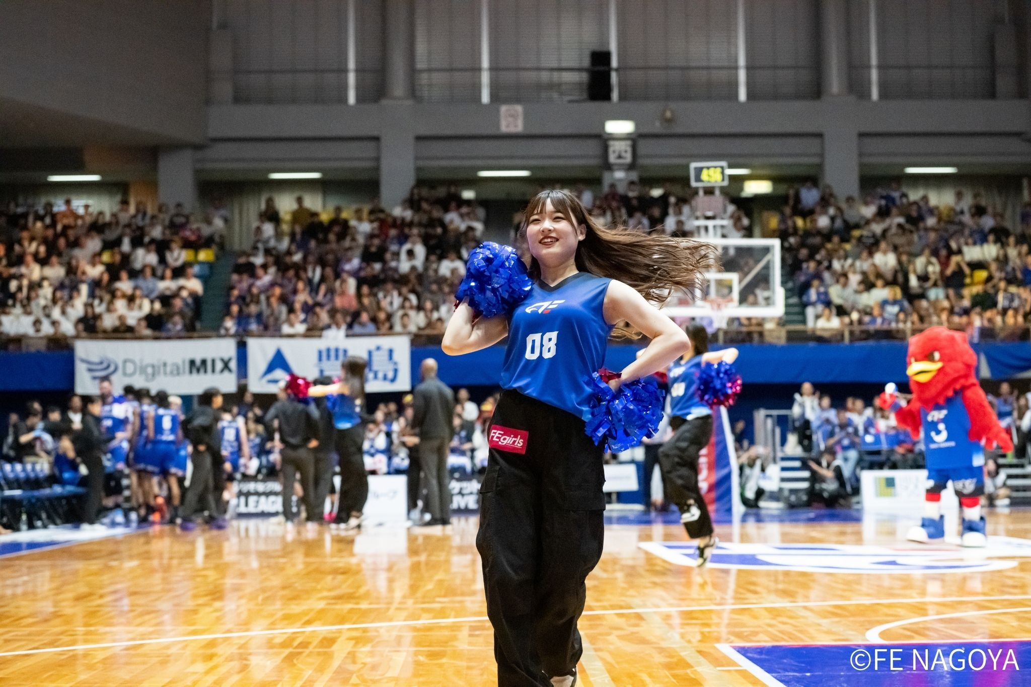 大阪が3Pシュートを決めて、18点差とされてしまう。直後に#22 ジョーンズがフリースローで2点を返すも、大阪のオフェンスを止められず。今度は、#54 オマラがポストプレーで2点を返すが、続くオフェンスでミスを犯してしまい、大阪に2点を返されてしまう。3分が経過し、44-60。 FE名古屋は、ディフェンスリバウンドを取り切れず、大阪にオフェンスチャンスを与えてしまい加点を許す。残り5分、#3 並里がフリースローを得るも1本外してしまう。続くディフェンスで、またも大阪にオフェンスリバウンドを許し、ビハインドが19点となる。 残り4分、#3 並里のファストブレイク、フリースローと連続得点が決まり、点差を15点に戻す。さらに走って、#0 ピケットが得点すると、大阪がタイムアウト、51-64、残り3:01。 タイム明け、#54 オマラのフックシュートで、64-53とするも、大阪がジャンパーで決め返す。残り2分を切ってチームファールのたまった大阪から#0 ピケットがフリースローを得るも1本外してしまうと、大阪が2P、3Pシュートと連続で決め返す。 FE名古屋は、残り30秒、#6 須藤がベースラインドライブを決めた後、#54 オマラがフリースローで加点し、58-71とし、3Q終了。