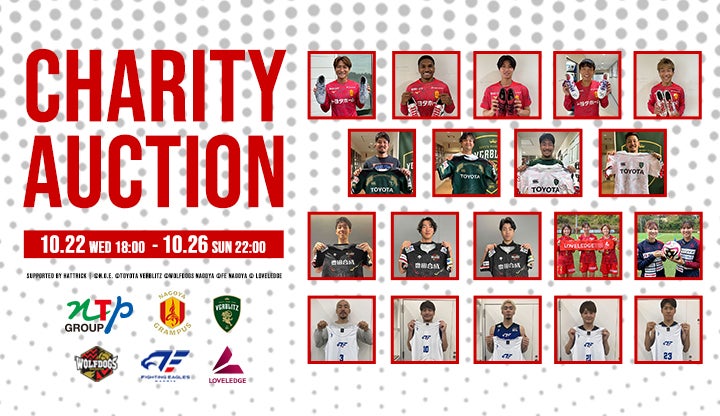 スポンサーのNTPグループ様主催で、愛知県に拠点を置くプロスポーツ団体の協力を得て、児童福祉への支援を目的としてチャリティーオークションを開催いたします。