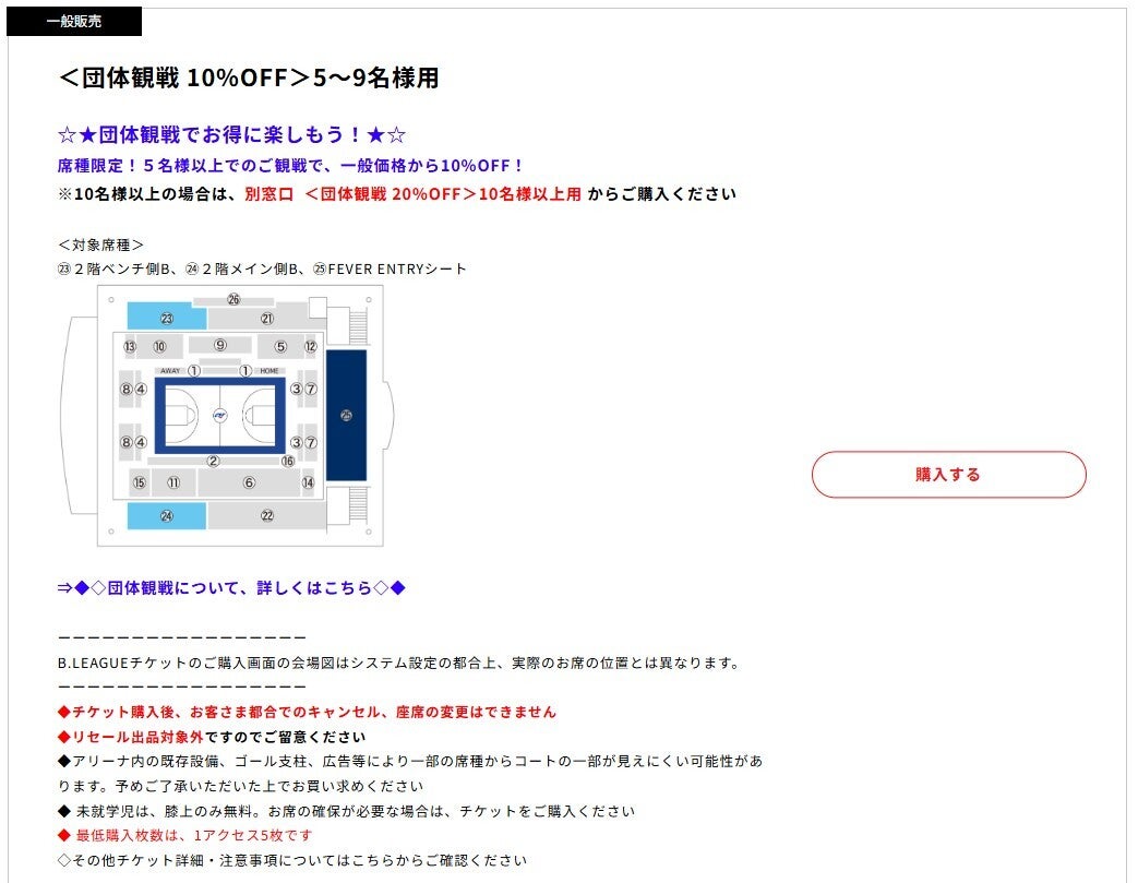 ※「ファンクラブ」もしくは「一般販売」用の窓口からは割引価格になりません。必ず団体観戦チケット専用の窓口よりご購入ください