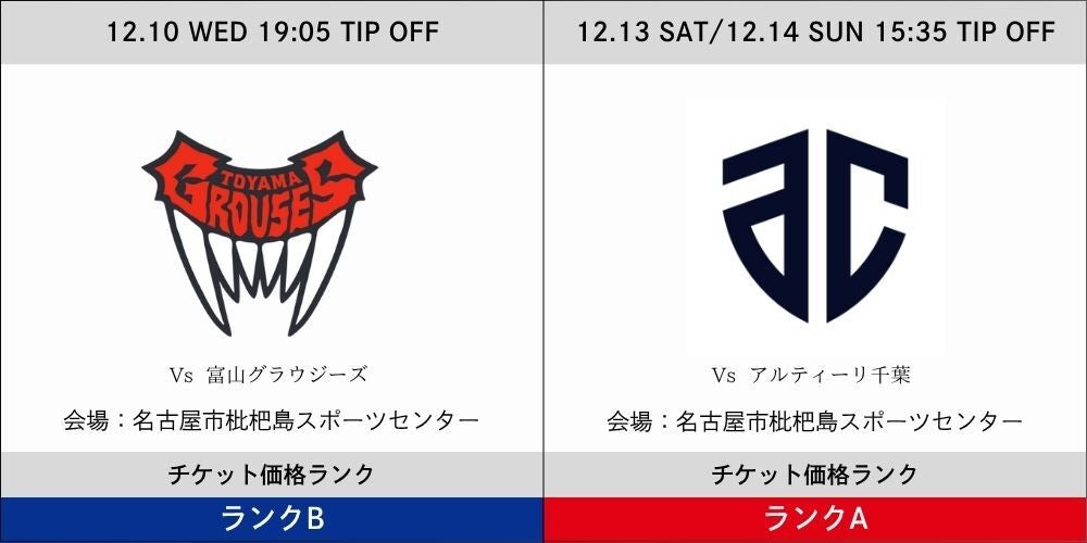 ◆12/10(水) 富山グラウジーズ戦 (チケット価格ランク:B)