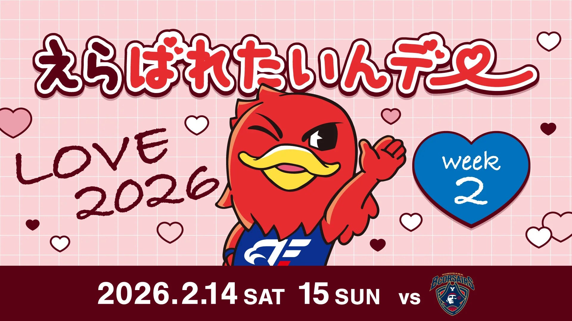 2/14(土)15(日)横浜ビー・コルセアーズ戦はイベント「えらばれたいんデー | LOVE 2026 week2」を開催!「バレンタイン」「LOVE」をテーマにしたイベントです!