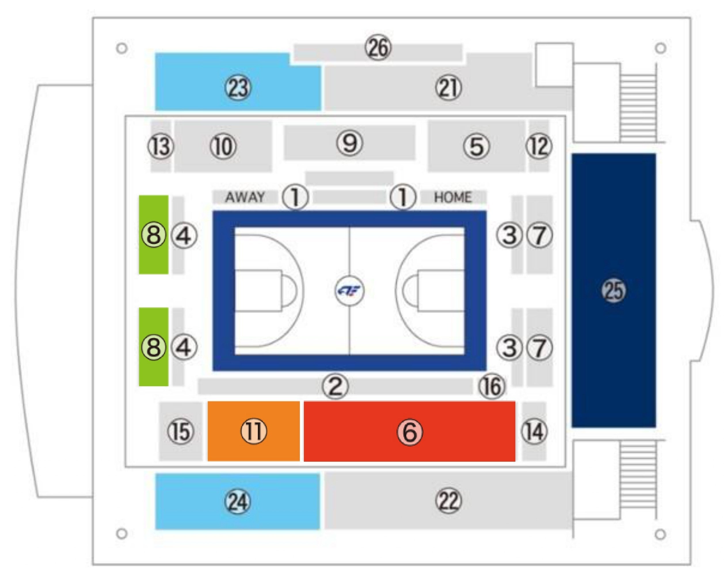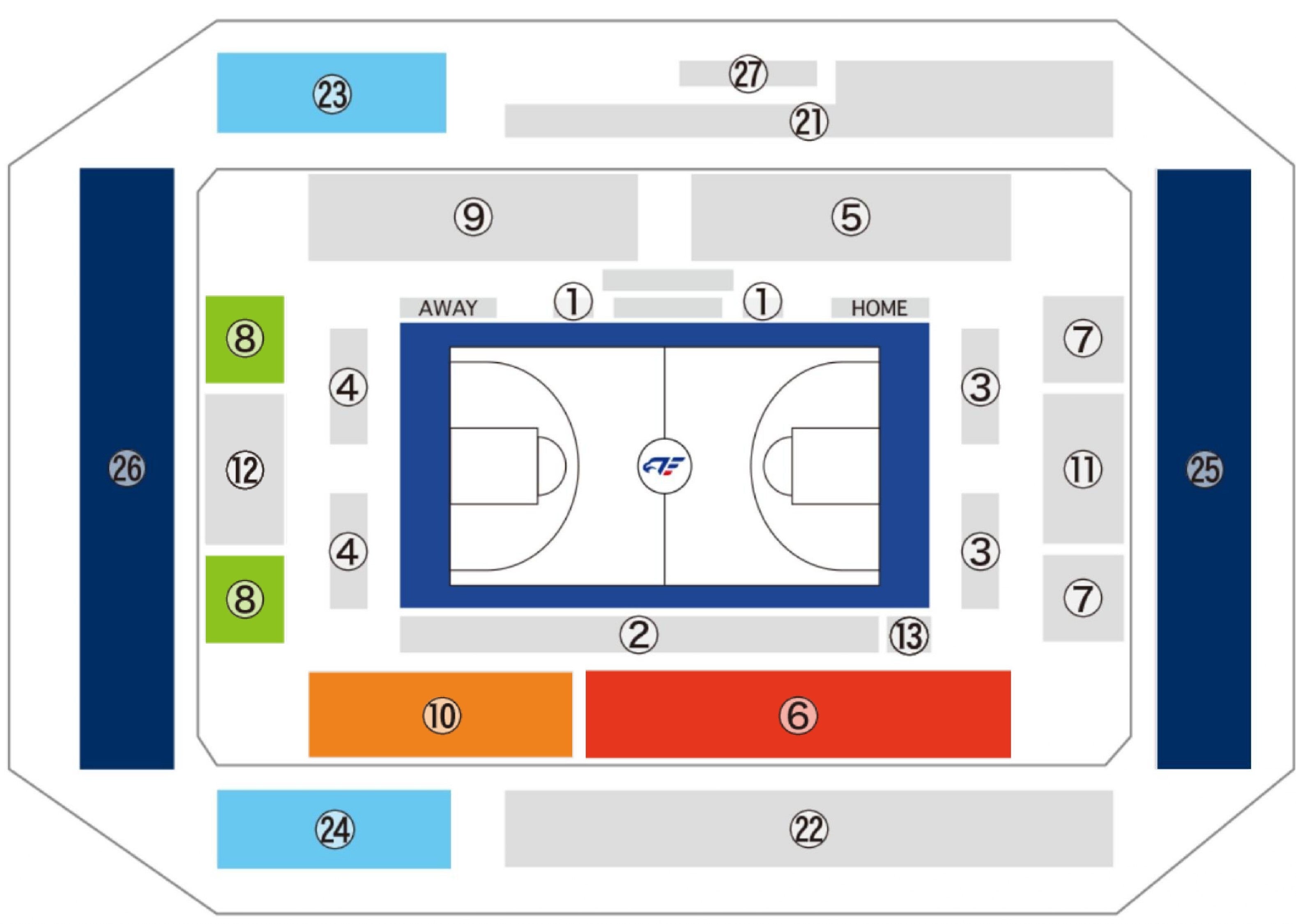 ※アリーナ内の既存設備、ゴール支柱、広告等により一部の席種からコートの一部が見えにくい可能性があります。予めご了承ください