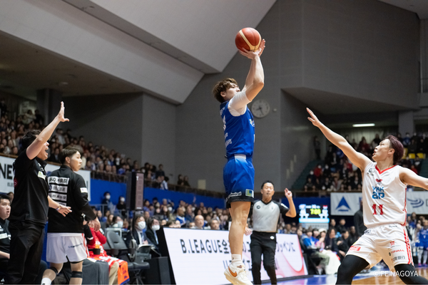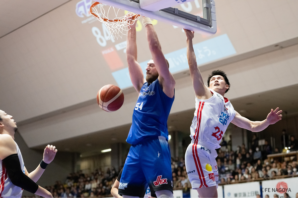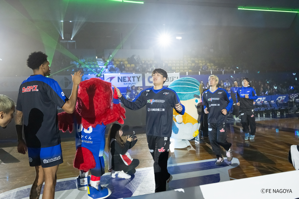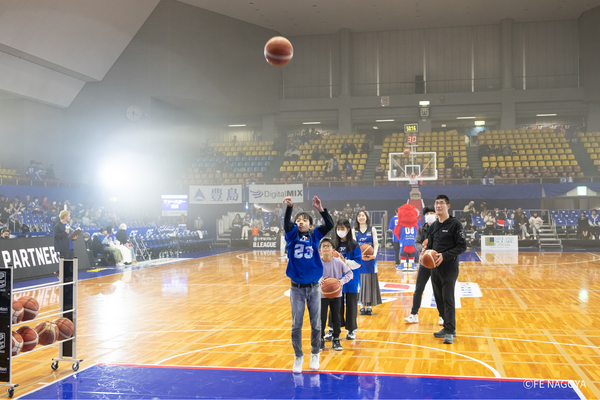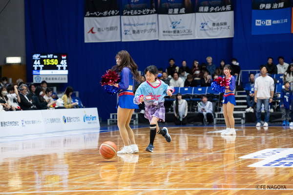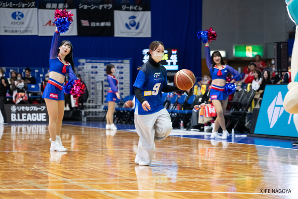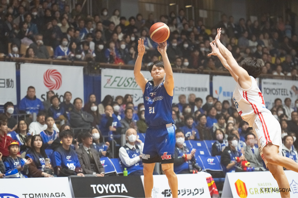 #21 笹山の3Pシュートで、4点差に迫ってスタート。富山がすぐに2点を返し、22-28。 FE名古屋は、#21 笹山が再び3Pシュートを決めるも富山にも3Pシュートを許し、点差変わらず。残り7分、#54 オマラがゴール下で得点するも、富山に返される。しかし、#54 オマラが、豪快なダンクで再度得点し、チームを盛り上げると、富山がタイムアウト請求、29-33、残り6:11。 タイム明け、#22 ジョーンズの3Pシュートが決まり、1点差に迫る。富山がすぐに得点するが、#54 オマラが決め返し、譲らない。しかし、直後に富山にバスケットカウントを許し、34-38と4点差となる。 FE名古屋は、#0 ピケットのジャンパーが決まった後、#23 保岡のドライブも決まり、38-38の同点として、オフィシャルタイムアウト。 タイムアウト明け、ゾーンディフェンスを仕掛けるも富山に連続得点を許してしまう。その後、#54 オマラが得点し、2点差に迫るも、富山の外国籍を止められず、残り2:38で、40-43。 さらに得点のチャンスを得るもミスが続き、決めきれず、逆に富山に得点を許し、タイムアウト請求、40-45、残り1:15。 タイム明け、#3 並里のジャンパー、#6 須藤のランと連続得点が決まり、44-45、残り30秒で、富山がタイムアウト請求。富山の最後のオフェンスを阻止し、そのまま前半終了。