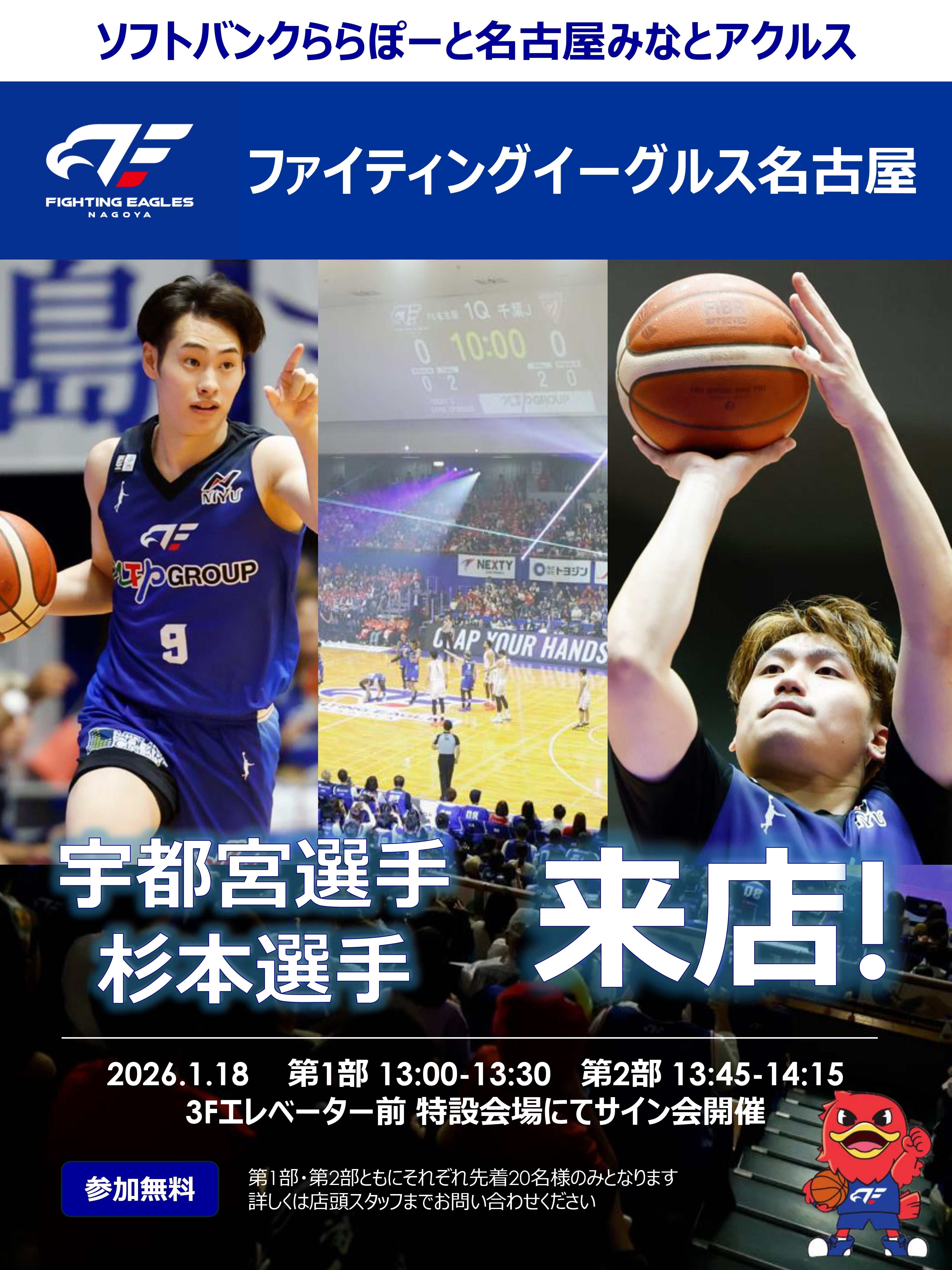 【1/18(日)】「ソフトバンクららぽーと名古屋みなとアクルス サイン会」実施のお知らせ