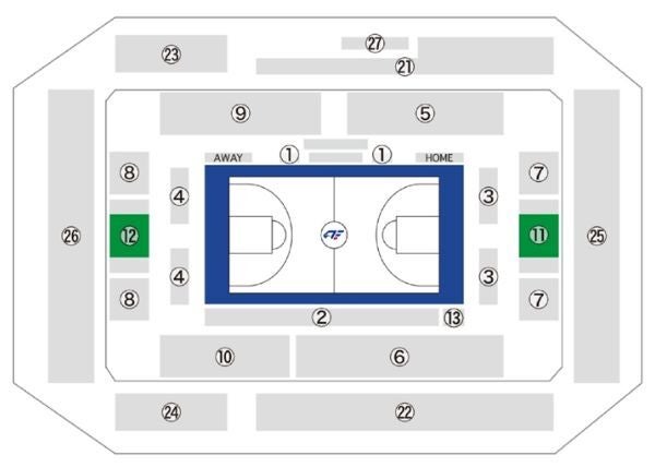 1月24日(土)25日(日) 広島ドラゴンフライズ戦につきまして、1階席「注釈付き見切れ席」を販売することが決定いたしました。柵などのアリーナ既存設備、ゴール支柱などによりコートが見えにくい可能性がありますが、1階でより迫力のある試合展開をお楽しみいただける座席となっております。