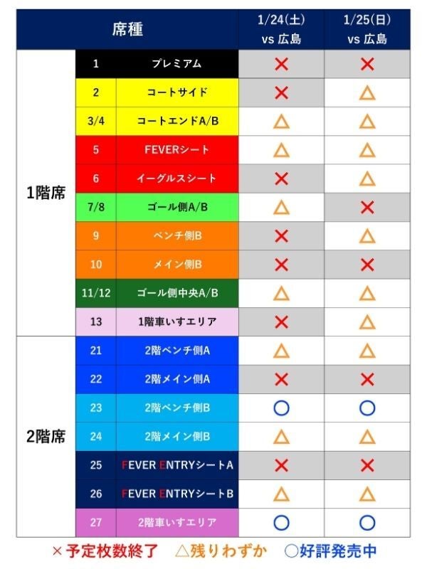 【チケット販売情報】1/24(土)25(日) 広島戦 注釈付き見切れ席 販売のお知らせ