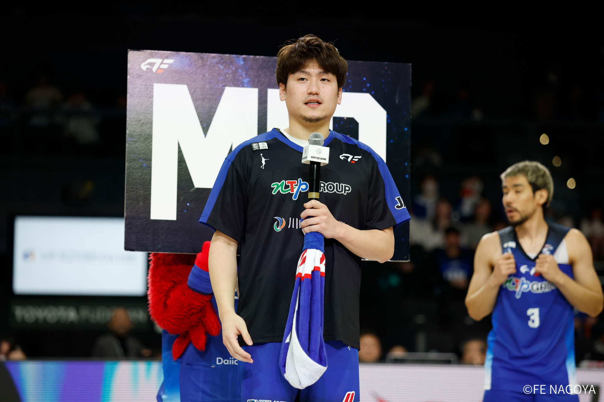 #6 須藤の連続ドライブで先制。さらに#22 ジョーンズのスティールから#21 笹山が得点すると、横浜BCがタイムアウト請求、46-38、残り8:14。タイムアウト明け、#6 須藤がドライブを仕掛けて、フリースローで1点追加するも、直後に横浜BCが3Pシュートを返し、47-41。 FE名古屋は、#6 須藤がプットバックでフリースローを獲得し、2点を返す。しかし、その後、横浜BCにバスケットカウントを許し、49-44と5点差に詰め寄られる。FE名古屋は、オフェンスでタフショットが続き、決めきれずに終わると、横浜BCに3Pシュート、2Pと連続で与えてしまい、49-49、残り5:29で、タイムアウト。 タイムアウト明け、#20 ロペスのリバウンドシュートで得点するも、横浜BCが3Pシュートを返し、51-52と逆転を許す。残り3分半をきって、#54 オマラがフリースローを獲得し、1点返して同点となる。横浜BCに3Pシュートを決められてしまうが、すぐに#10 杉本が3Pシュートを返して譲らず。 残り2分半となり、チームファールトラブルから横浜BCにフリースローで得点を許し、55-56。FE名古屋は、#20 ロペスがドライブを決めた後、#0 ピケットがブロックで横浜BCのオフェンスを阻止し、#54 オマラのフリースローにつなげ、59-56とする。残り1分半、再度、横浜BCにフリースローを許し、1点差となる。 残り1分、#22 ジョーンズの3Pシュートが決まり、4点差とし、62-58で、3Q終了。