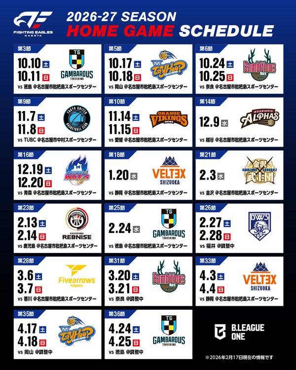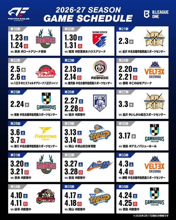 ※試合のスケジュールは変更する場合がございます。試合前には必ずFE名古屋公式WEBサイトをご確認ください。