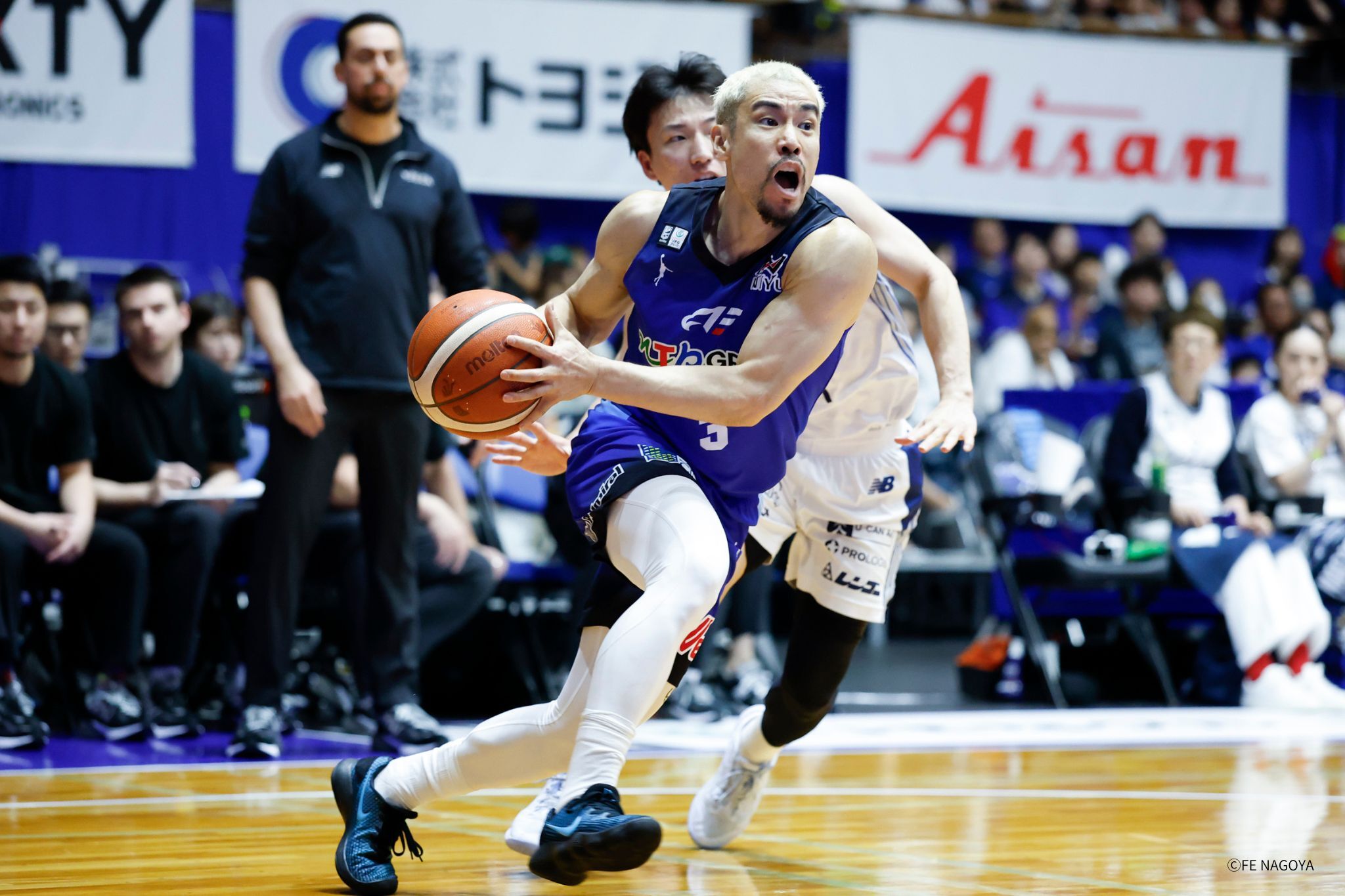 #0 ピケットのインサイドアタックで、先制し、1点差とする。続けて、#23 保岡がミスマッチを攻めて、逆転に成功、59-58。長崎が高さを活かして、得点するも、#3 並里がドライブで取り返す。しかし、長崎に3Pシュートを許したあと、ミスから走られてしまい61-65とビハインドを背負う。さらにミスからの失点を続けてしまい、2回目のタイムアウト請求、61-67、残り7:05。タイムアウト明け、ミスでポゼッションを失ってしまうと、長崎にフリースローを与えてしまい、61-69。そこから得点が動かず、オフィシャルタイムアウト。タイム明け、長崎にフリースローで得点を与えてしまい、61-71。FE名古屋は、ミスでポゼッションを失い、追加の失点をしてしまう。残り4:15となり、#54 オマラがフリースローを獲得するも、1本外し、11点ビハインド。続くオフェンスもミスをしてしまい、長崎に速攻を与えてしまう。さらに長崎にフリースローで得点を与えてしまい、残り3:22で、62-76とビハインドが14点となる。長崎の強度の高いディフェンスの前に得点出来ずに時間が経過してしまい、残り2:14とのことで、バスケットカウントを許し、62-78となり、最後のタイムアウト請求。タイムアウト明け、ボーナススローが決まって、17点ビハインドでリスタート。残り2分となり、#23 保岡のバックカットで得点した後、続けて、#23 保岡が3Pシュートも沈めて、67-79、残り1:16で、長崎がタイムアウト請求。タイムアウト明け、長崎にドライブを許して失点。続けて、長崎に得点を許してしまう。その後、#20 ロペスのダンクや#0 ピケットの3Pシュートなどで、最後まで追いかけるも最終スコア、73-83で、敗戦。