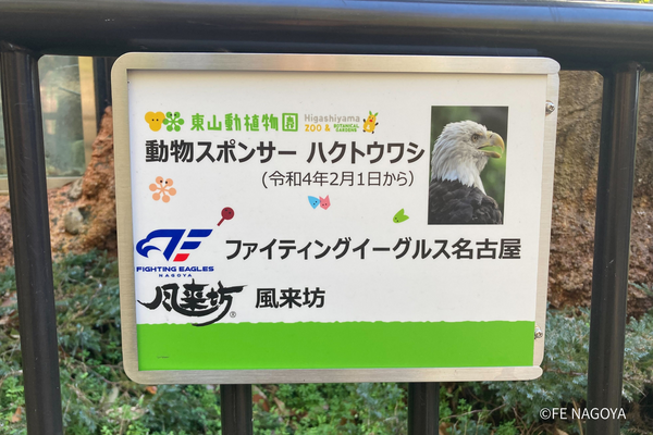 FE名古屋はチーム名やマスコットキャラクター「リードくん」に因み、2022年から5年連続で東山動植物園のハクトウワシの動物スポンサーとなっており、ハクトウワシのエサ代等の維持管理費用として活用いただいております。