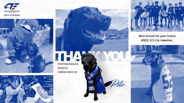 このたび、社会福祉法人 日本介助犬協会に在籍している介助犬(PR犬)として活動し、FE名古屋ともチームスタッフ契約を結んでいる「ピトくん」が今シーズンをもって引退いたします。