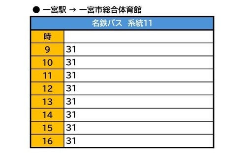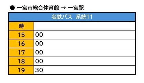 試合開始・終了時刻にあわせ、多客時に限り一宮駅 ~ 一宮市総合体育館 間の路線バスを増便いたします。