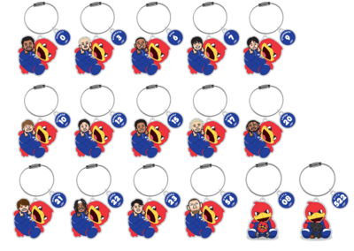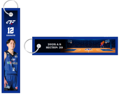 イラスト仕様の選手と「特大リードくん」デザインのキーホルダーです。