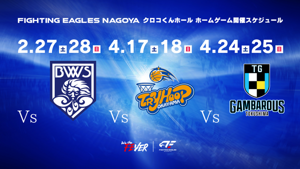 ファイティングイーグルス名古屋では調整中となっておりました、りそなグループ B.LEAGUE 2026-27シーズンの第26・35・36節の試合会場がクロコくんホールに決まりましたのでお知らせいたします。