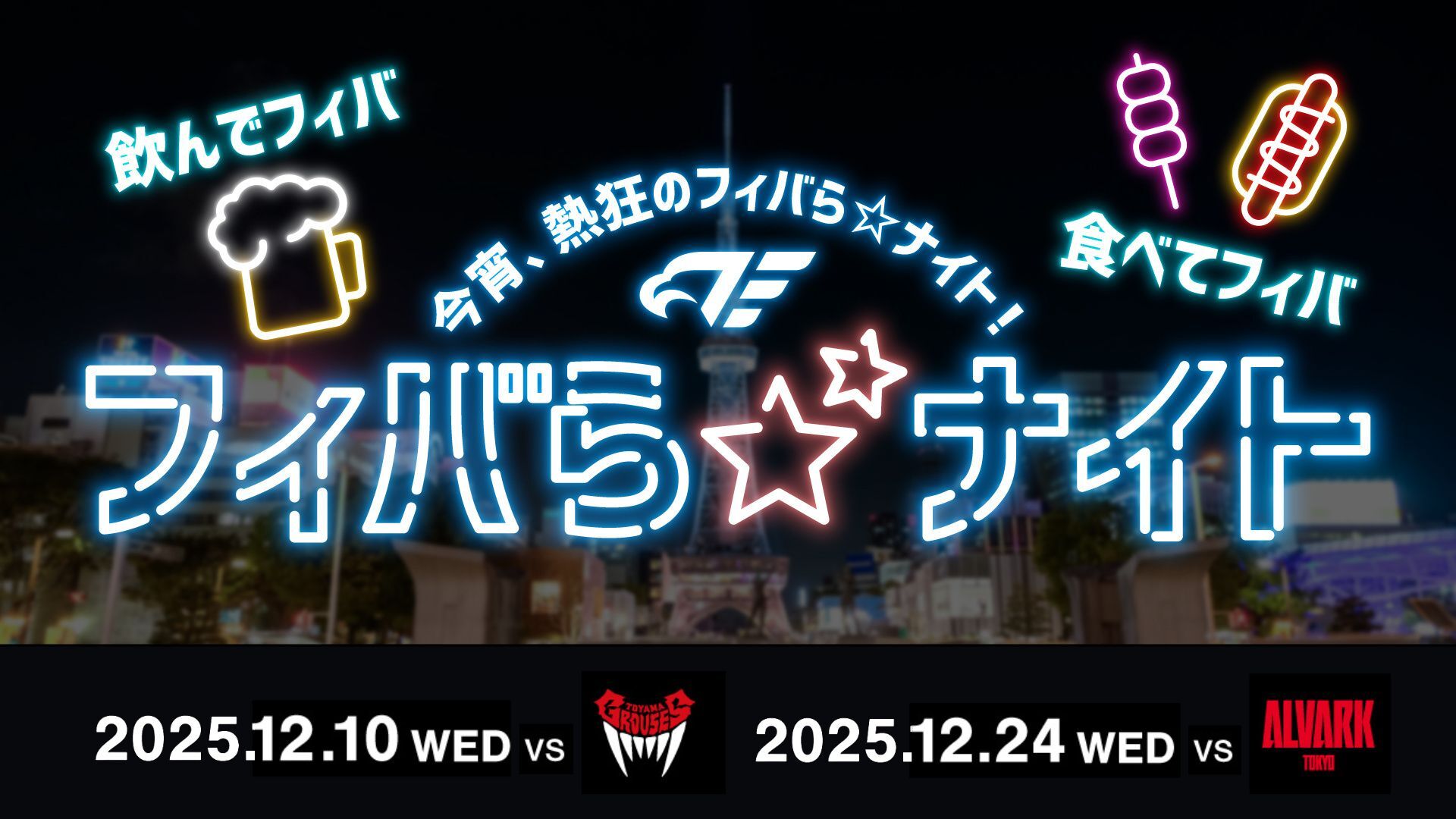 「フィバら☆ナイト」開催の 12/10(水) 富山戦、 12/24(水)A東京戦はお買い求めやすい「ランクB」でチケットを販売!!