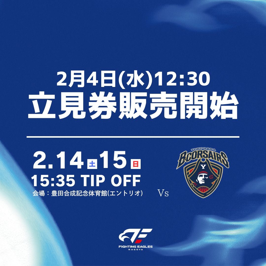 【チケット情報】2/14(土)15(日) 横浜BC戦 立見券販売のお知らせ