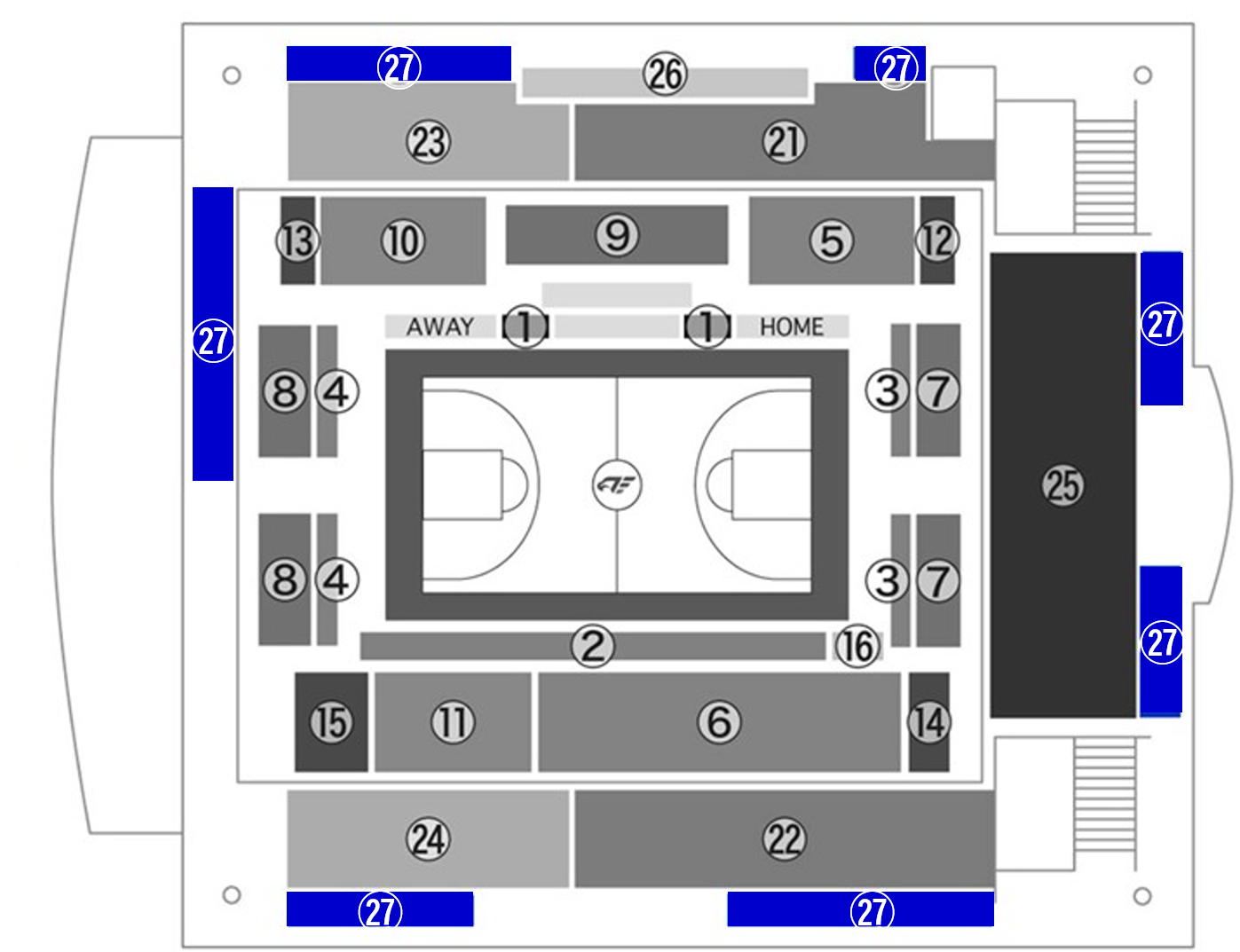 会場図青色部分:㉗2階立ち見エリア
